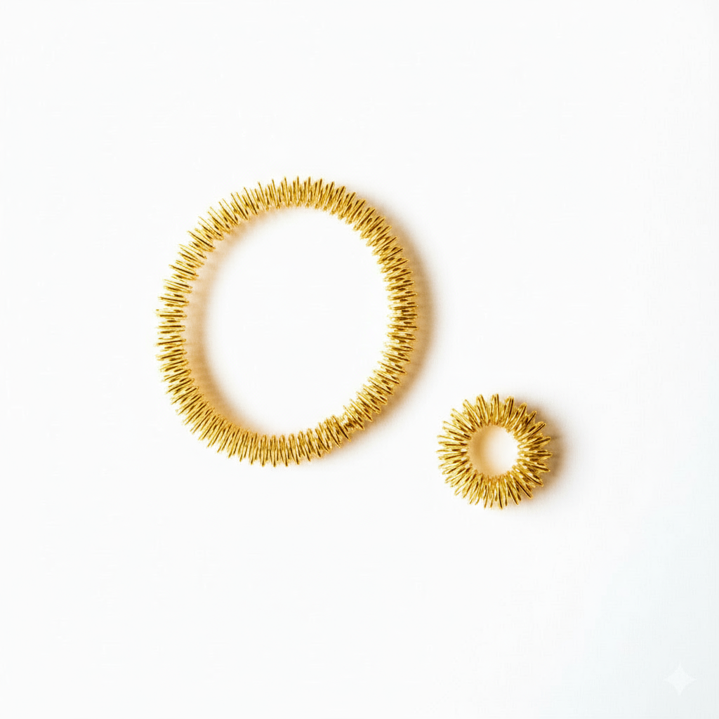 Our sensory-friendly acupressure massaging rings and bracelets are here and ready for your enjoyment! A fantastic way to navigate and help to relieve built-up stress, tension, anxiety, and fidgeting. Made from stainless steel with an anodized coating, it is safe for kids and adults alike. A practical way of diverting nail biting, skin picking, knuckle cracking, pen flicking, and other distracting fidgeting behaviours.