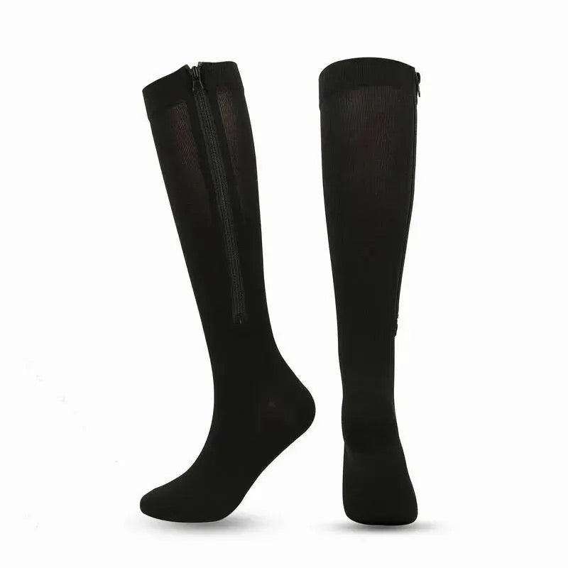 Knee high compression stockings that are easier to put on, and fit more comfortably? Yes please! No more toiling, pushing, pulling, and stretching tight compression stockings on and into place with this fantastic zip design. They offer graded compression and are easier to put on and remove independently, and with less pain and joint issues and ease the usual struggle of trying to navigate compression stockings.