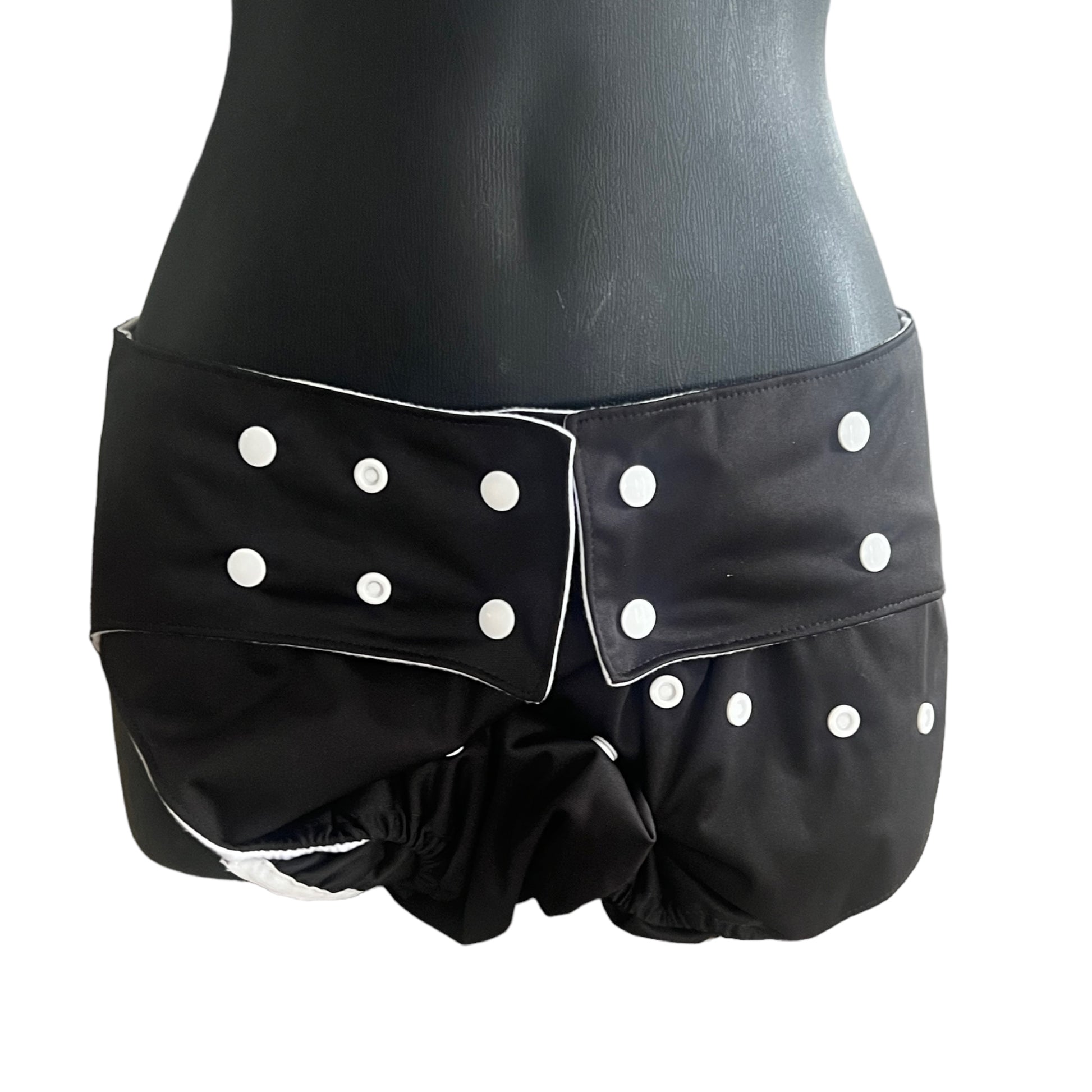 These are designed with an adjustable elastic waist with a adjustable snaps to easily adjust it to suit your needs and makes it incredibly comfortable to wear.
