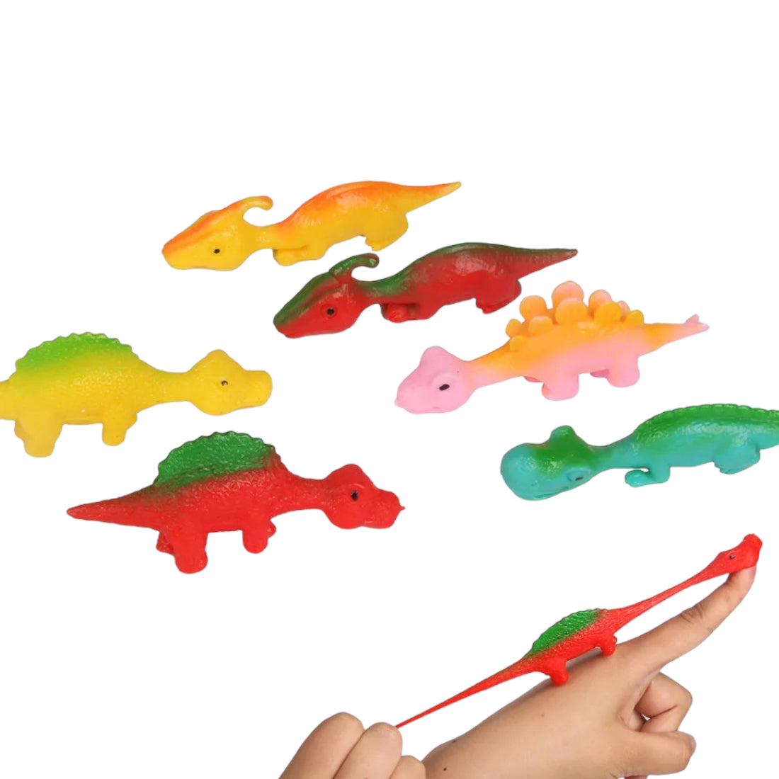 How to use: Simply place one finger inside the dinosaur's head, and a finger from the other hand into its torso. Keep the finger in its head steady, and pull back with the finger that is in its torso. Aim where you want to send it flying, then release the finger that is in its torso to send it flying away! You can also draw back holding its tail if it is easier for you as well! For more instruction / step by step, please see our video.
