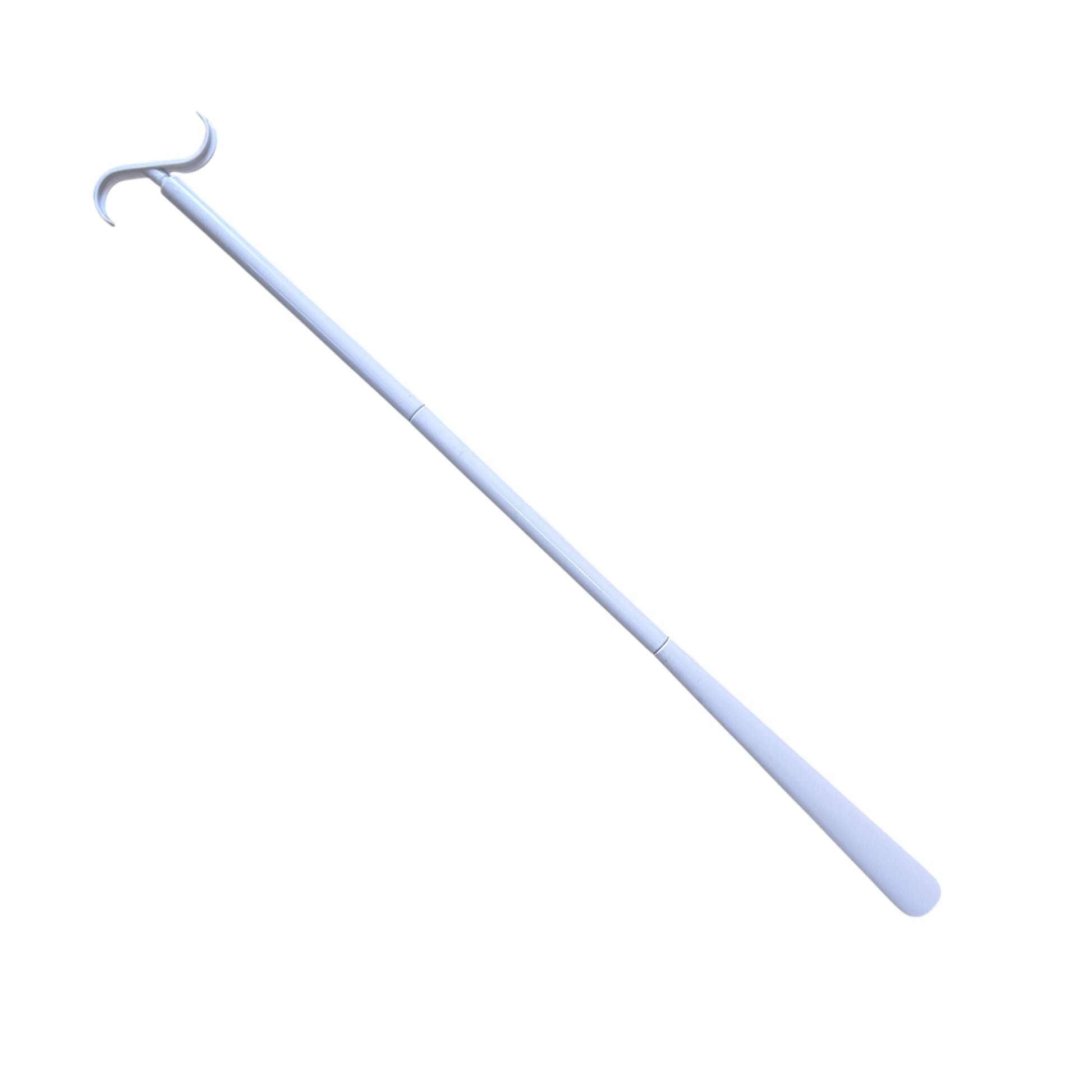 ➡️ Dressing Aid, opposite end features alternating dressings hooks. These hooks make it easier to put on clothes such as your socks, shoes, pants, shirts, jumpers, and jackets — both putting on and removing.