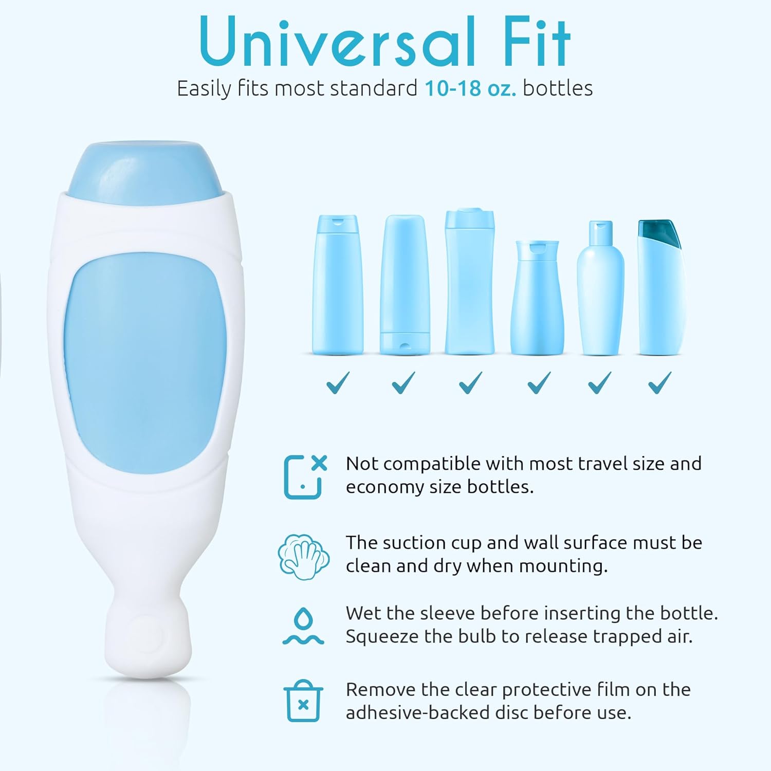 Slide your bottle inside, mount it to the wall, and give the base a gentle squeeze to dispense. No pumps. No lids. No juggling slippery bottles.
