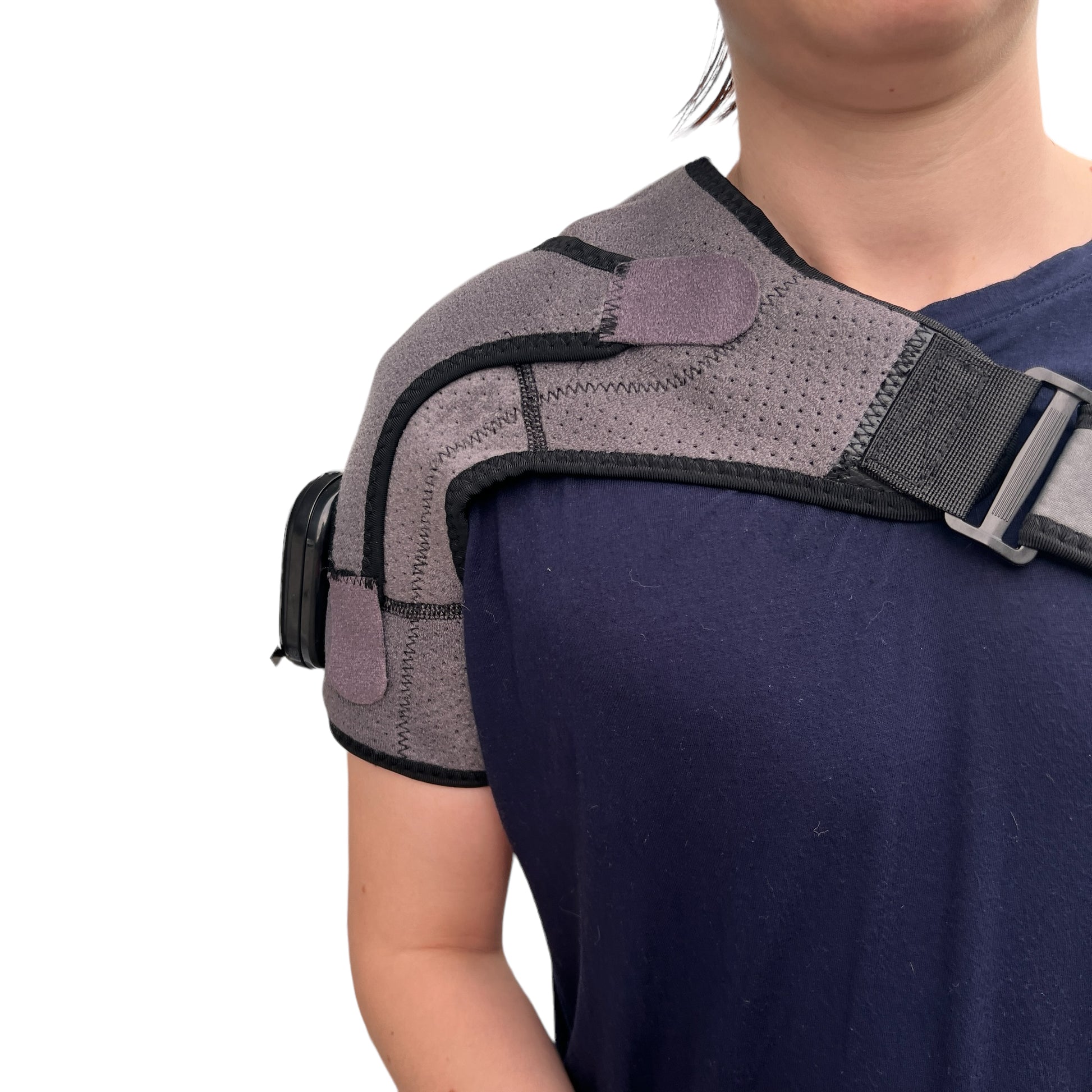 Our USB heated shoulder braces will support your shoulder by offering a gentle warm targeted to the shoulder joint for the most effective relief to pain. The heat can help heal and soothe your shoulder pain. This brace can be effective for those with injuries and shoulder conditions such as frozen shoulder, muscle sprain, stiffness, aches and pains. It will also benefit those with chronic illness involving joint conditions such as arthritis, Ehlers Danlos Syndrome, and other inflammatory joint issues in the shoulder and scapula.