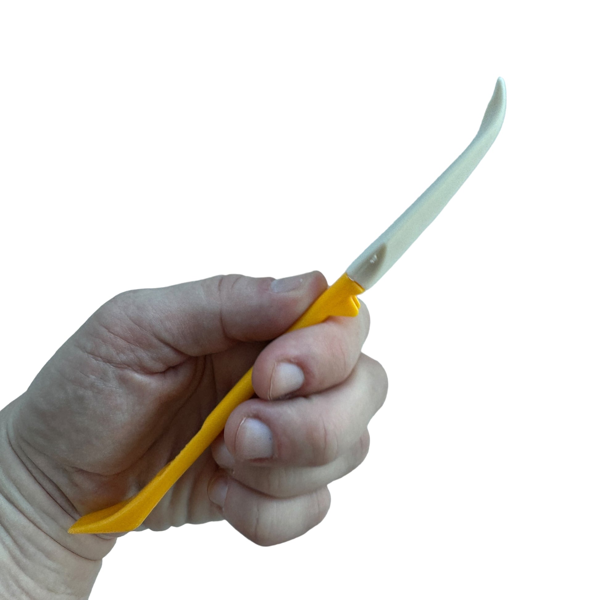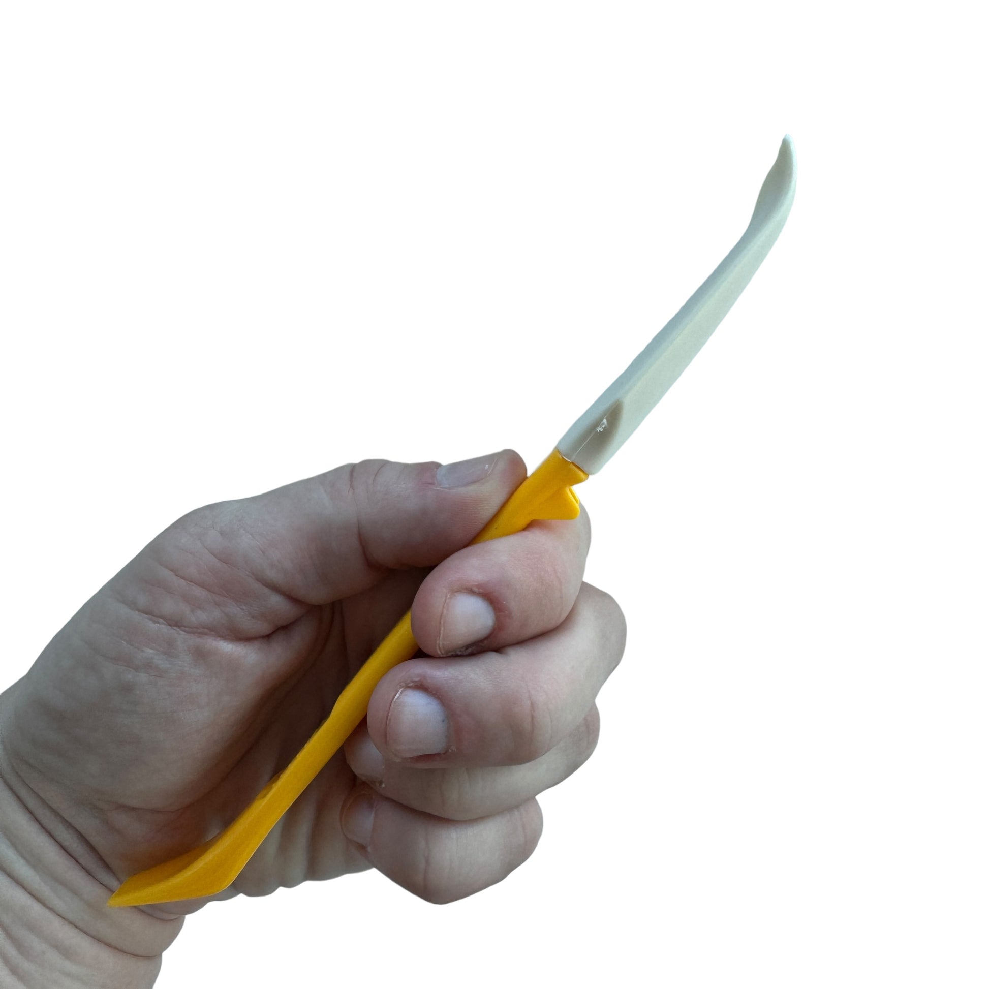 Great for: The Jam Jar Scraper is perfect for ANYONE! But is especially beneficial for anyone who has limited hand strength, arthritis, or any mobility challenges. The Jam Jar Scraper’s ergonomic handle ensures a comfortable grip for everyone. But it’s not just practical; it’s fun, lively, happy and cheerful with its yellow handle adding a pop of joy to your kitchen.
