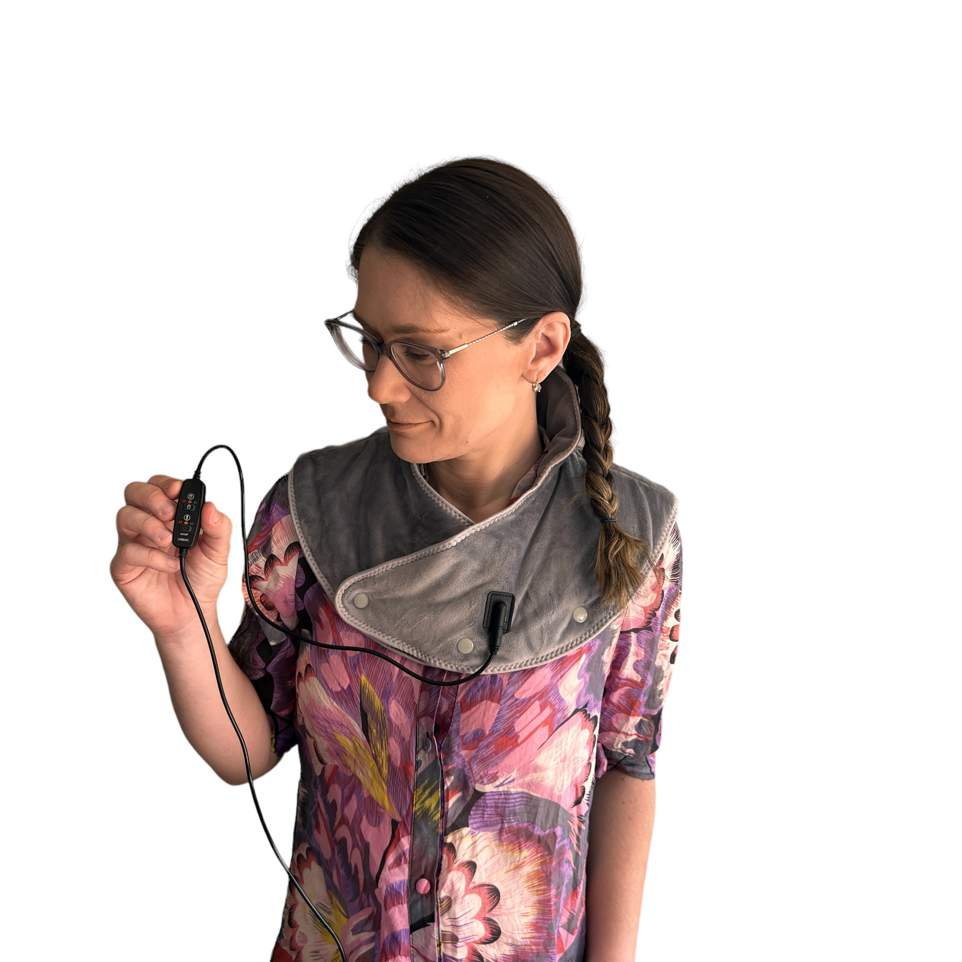 Feel the heated relief for shoulder, neck and upper back pain in no time, without being weighed down, without the frequent need to reheat heating pads.