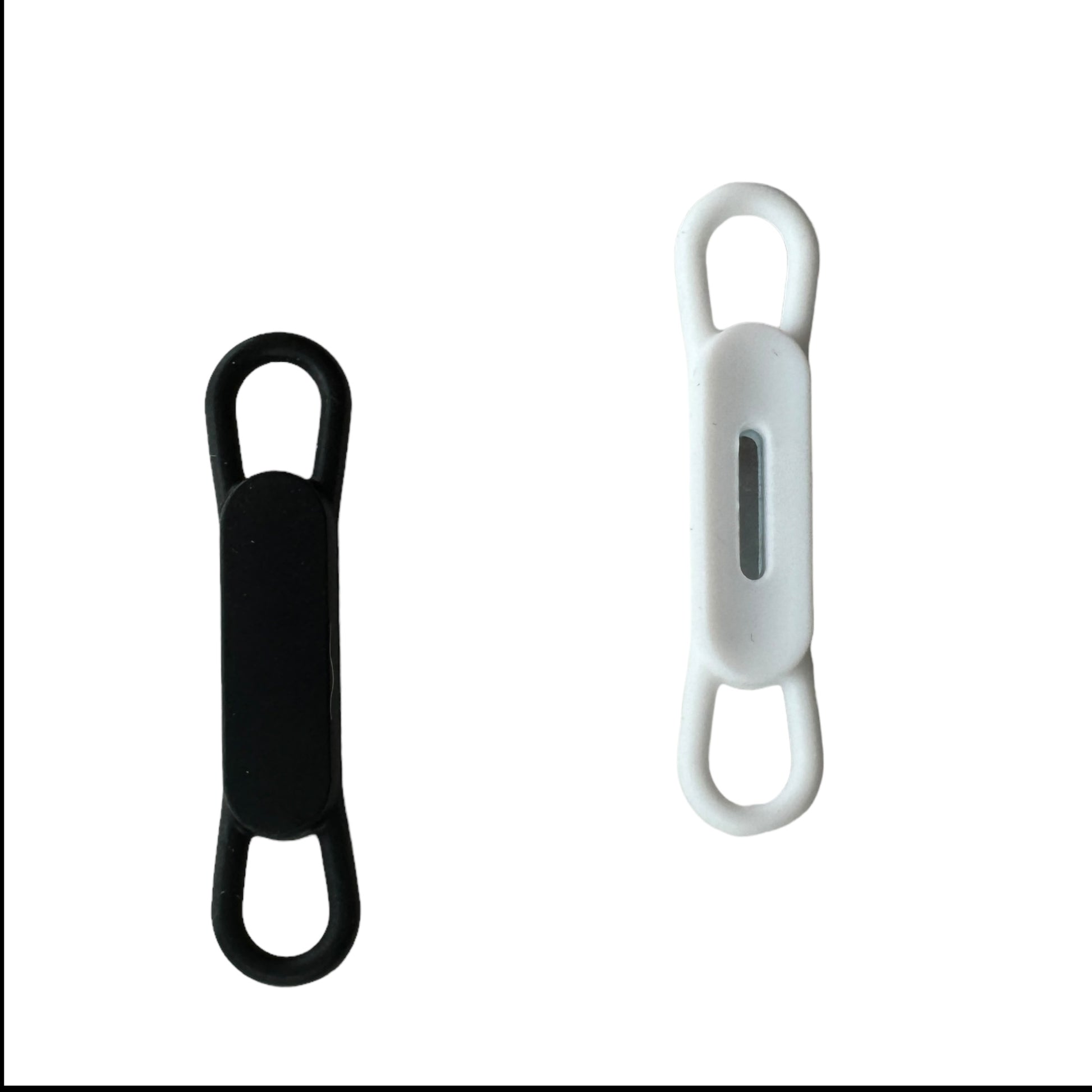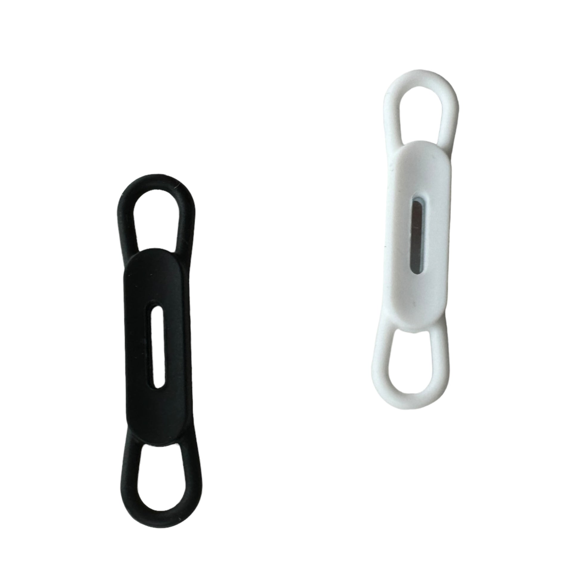 Image Description: A pencil and a pen is shown. The silicone magnetic accessory is shown on them. It has two loops of silicone between a magnet, you slide the pen into the two loops. This will now adhere your pen to any magnetic surface. However, it also comes with an adhesive metal disc so that you can attach it to other items that were not otherwise magnetized.
