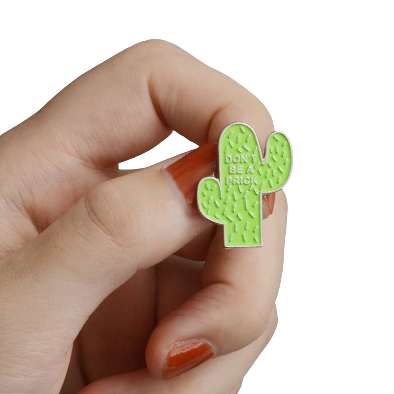 Don’t be a prick! This fun cactus pin is all sorts of fun play on puns, jokes, and lighthearted banter. Share it as a gift, add to your collection, or start conversation. This pin is shaped as a cactus in green, with the words “don’t be a prick” inside the cactus in silver.