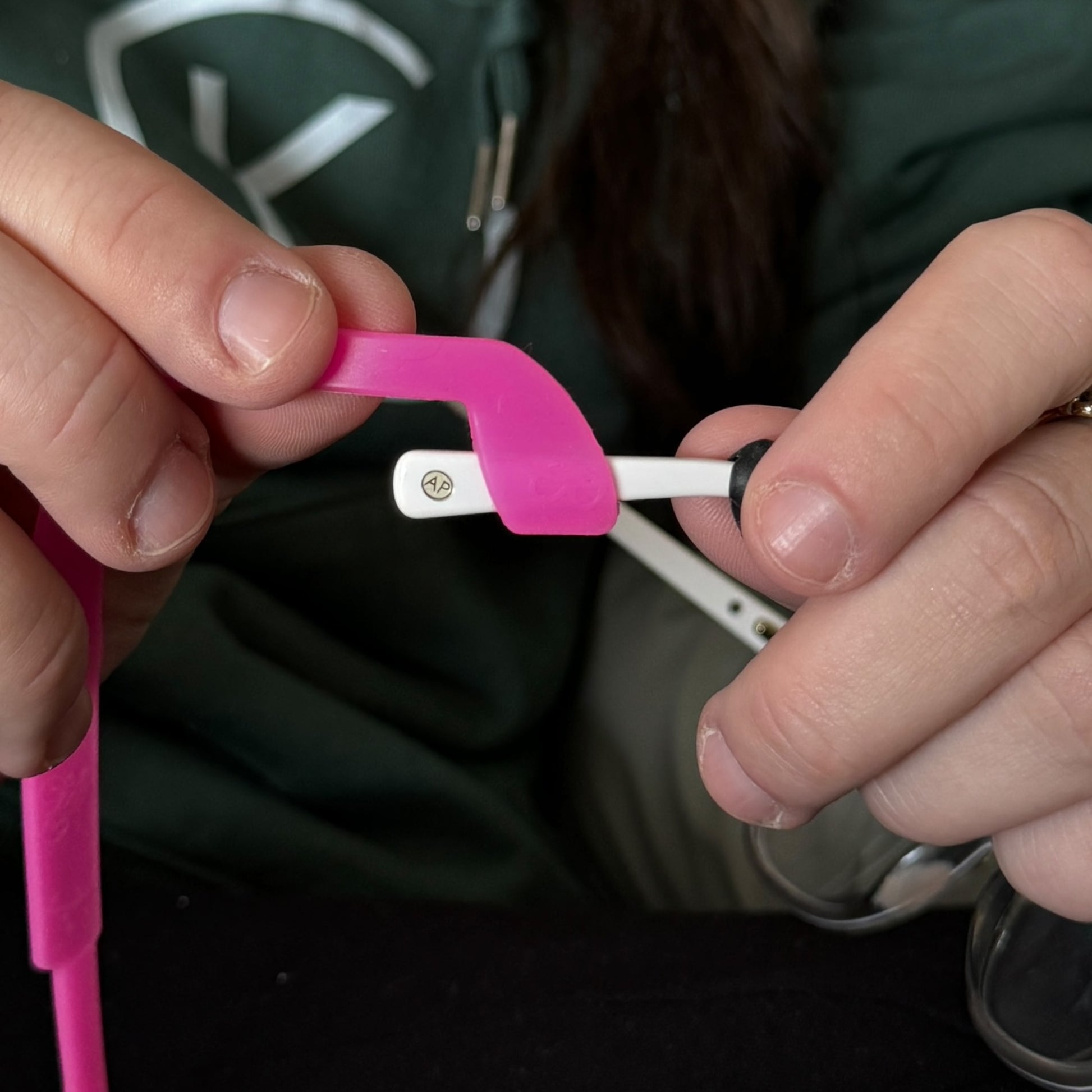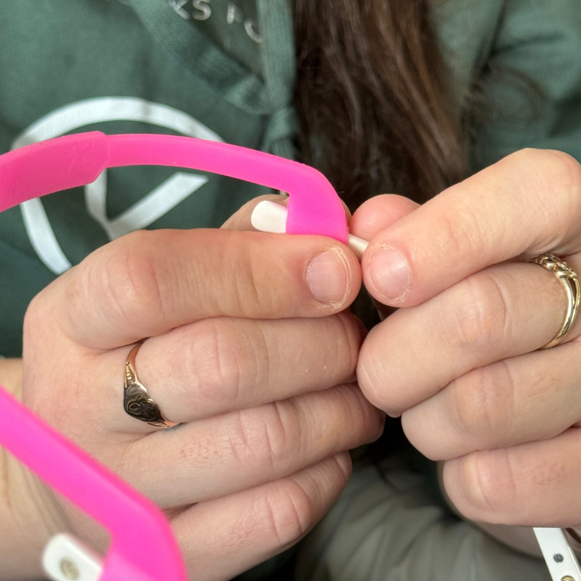 1. Line up your glasses strap and ensure that the irons on the back of the strap are the right way up.Β