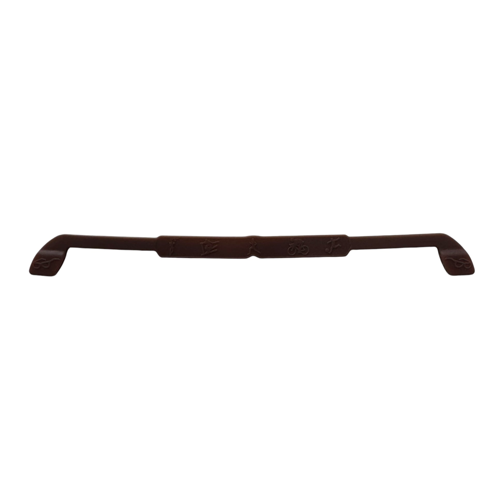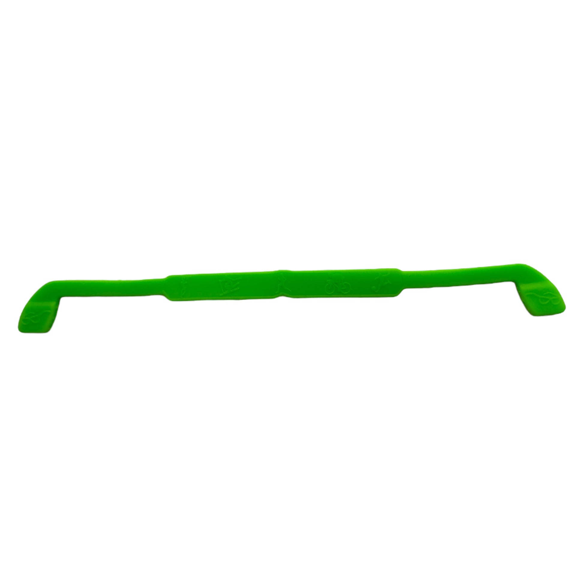 Image Description:Β Silicone glasses strap with soft, flexible loops at each end to securely grip the arms of your glasses. The strap curves comfortably around the back of the head to keep glasses from slipping, falling, or moving during activity. Embossed sport-themed icons decorate the band, adding a subtle design detail.Β