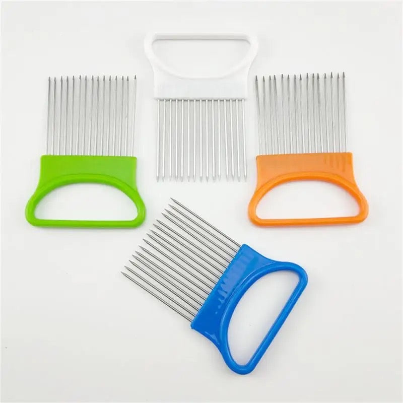 To use: Grasp the item you want to cut and stab the chopping aid into the item. You can now use the aid as a stabiliser for the vegetable, fruit or item that you want to cut, OR you can use it as a guide to help you slice it by using a knife to slice between each prong to have stability and guidance when cutting things more easily and in a uniformed slice size. Once the item has been fully cut, you can hold onto the item you were cutting yo pull the chopping aid out. It can be reused over and over again. When you have finished with it, just rinse, wash and dry as you would any other utensil. Store it in your utensils drawer for next time.
