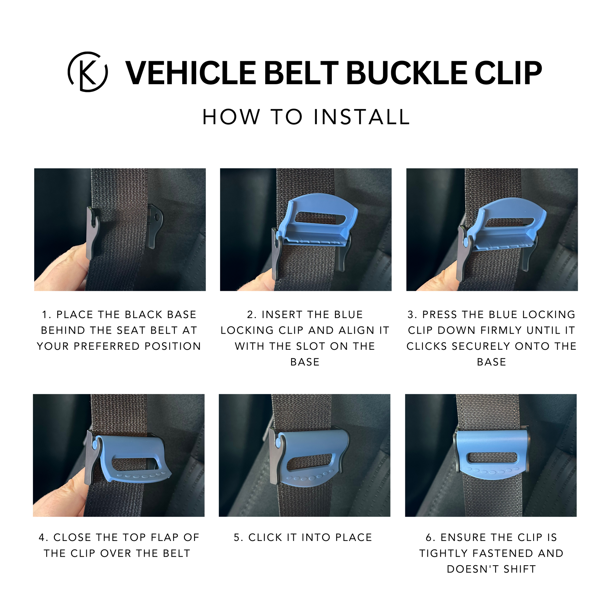 ➡️ To install, please open the clip to install it onto the seatbelt at the height / level it is needed. See photo.